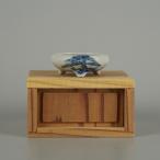 【中古】盆栽鉢 市之倉 石州 豆鉢 長辺 約 4.7cm 丸鉢 染付 松 まつ マツ 人物 青 ミニ鉢 箱付 鑑賞 観賞用 現品 中古鉢