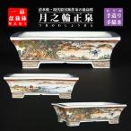 盆栽鉢 月之輪正泉五彩訪友図長方鉢 絵付鉢 色絵 京焼 清水焼 5号 15cm 小品盆栽に最適