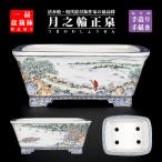 盆栽鉢 月之輪正泉五彩湖畔風景福寿図長方鉢 絵付鉢 色絵 京焼 清水焼 5号 15cm 小品盆栽に最適