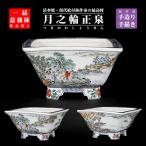 盆栽鉢 月之輪正泉五彩山水図正方鉢 絵付鉢 色絵 京焼 清水焼 5号 14cm 小品盆栽に最適