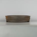 【中古】 盆栽鉢 常滑 中野 行山 大型 長辺 約 40.5cm 丸鉢 鋲打 泥物 現品 中古鉢