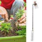 雑草取り 道具 根抜き除草ツール園芸鍬ポータブル両用鍬 草抜き くわ 芝生 雑草抜き 道具 片手鍬 菜園鍬 ステンレス製 草削鍬 4本鍬 小 コンパクト耕作鍬