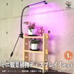 ミニ観葉植物ディスプレイ&生育棚 自動水やり器付き・木製くさびラックCセット(ミニ観葉2個付き・育成ライト付き)【資材 /1個売り】