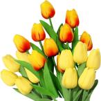 morytrade チューリップ 造花 20本セット 本物そっくりで華やか インテリア ギフト 花束 (イエロー系, 標準)