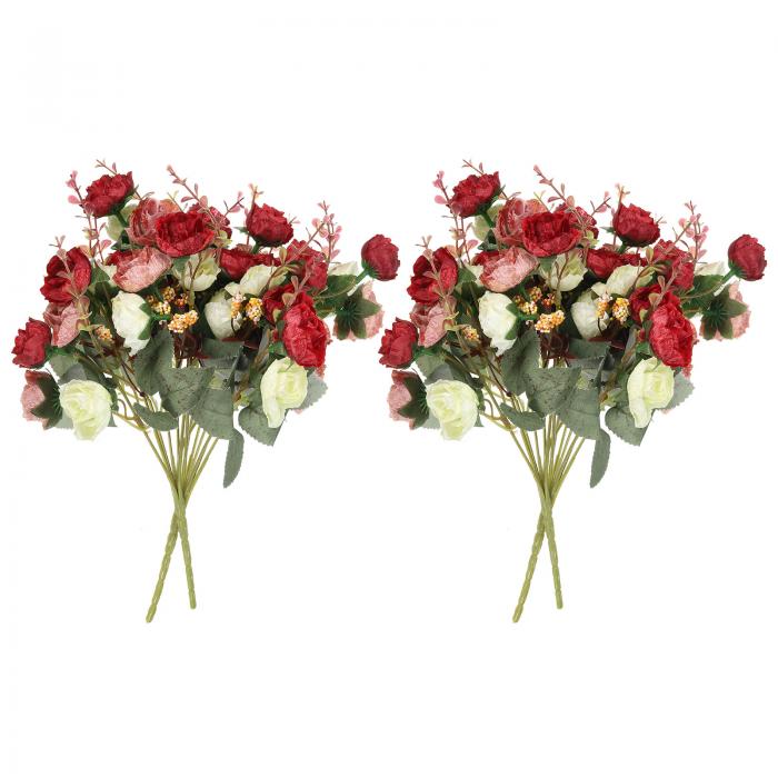 【期間限定10%OFF】PATIKIL 7枝 21頭 造花シルクミニローズ 茎付き 4個 フェイクフラワーリーフ ローズデコレーションブーケ 結婚式 ホームオフィスの装飾用 レッド