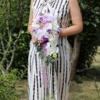 ブーケ ウェディングブーケ ブライダルブーケ キャスケードブーケ ウエディングブーケ 胡蝶蘭 花嫁 造花 花束 華やか 結婚式 二次会 披露宴 パープル 紫