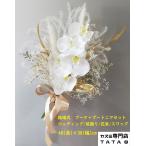 【Tata8】ウェディングブーケ/ブートニアセット 胡蝶蘭 白無垢 着物 和装 結婚式 挙式/ブライダル ウェディングドレス 花束 生花不使用 ゴールド/白71C0