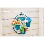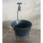 ガーデニング雑貨 プランターポット プランターラック プランターカップ レトロ 植木鉢 水道 蛇口 車輪 タップ付き 青 カントリーガーデン雑貨 園芸雑貨 壁掛け