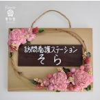 玄関ドアに ピンクのお花のフレームアレンジ お名前プレート付き 表札にも お花の壁掛け ギフト プレゼント 開店祝 引越し祝 誕生日