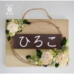 玄関ドアに表札リース 白いバラと緑のお花でお名前プレート付きのプリザーブドフラワーリース ギフト プレゼント 開店祝 引越し祝 誕生日