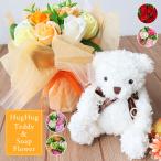 【即日発送】 HugHug テディ & フラワーセットL ソープフラワーブーケ(スタンディングブーケ) / 花束 ブーケ ソープフラワー ぬいぐるみとお花 母の日
