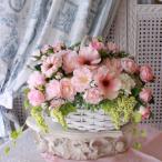 造花 フラワーアレンジメント ラナンキュラスのカゴアレンジ 洋風 ギフト アーティフィシャルフラワー シルクフラワー アートフラワー バラ 薔薇 かわいい 贈り