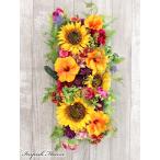 造花 リース 壁掛け 特大 アートフラワー ひまわり アレンジ アレンジメント W-482