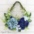 造花 壁掛け リース 青 インテリア アーティフィシャルフラワー 豪華 アレンジメント W-1050