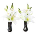 造花 仏花 カサブランカの小花束一対 (花器付きセット) シルクフラワー CT触媒 お彼岸 お盆 お供え お仏壇 仏花 btb