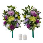 仏花 造花 プレミアム 一対 ホワイトパープルの供花 お墓用 仏壇 お盆 お彼岸 法事 命日 お悔やみ 夏 枯れない フェイクフラワー 花束仏花