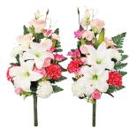 牡丹 ユリ ダリア しきみ(樒)付き 造花 2束 固定具付き 造花 仏花 お墓用 お墓参り お盆 お彼岸 お供え 花 花束 アレンジメント ハンドメイド P1-057