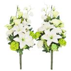 仏花 お墓用 仏壇用 造花 ホワイトグリーン 花束仏花 一対 2束 お供え 墓 墓花 お悔やみ お盆 新盆 初盆 お彼岸 法事 供花 おしゃれ 春 夏 秋 冬