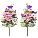造花 仏花 仏花 上品なカサブランカと藤色トルコキキョウの花束一対 CT触媒 紫 シルクフラワー お彼岸 お盆 お仏壇 お墓 花 お供え 屋外 屋内 兼用 btb