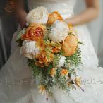 ウェディングブーケ ブライダルブーケ キャスケードブーケ ウエディングブーケ 花嫁 ブーケ 造花 花束 華やか エレガント 結婚式 二次会 披露宴 パープル 紫
