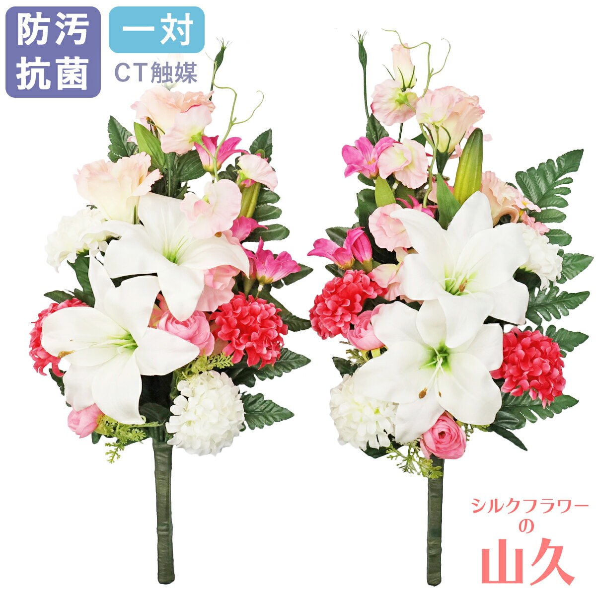 造花 仏花 上品なカサブランカと桜色トルコキキョウの花束一対 CT触媒 シルクフラワー お彼岸 お盆 お仏壇 お墓 花 お供え 屋外 屋内 兼用 btb