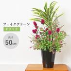 造花 観葉植物 フェイク ドラセナとセンニチコウの秋色の鉢植え 50cm フェイクグリーン インテリアグリーン CT触媒 シルクフラワー mgr