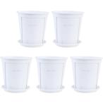 スリット鉢 おしゃれな カラー プラスチック 植木鉢 鉢底石不要 根張良好 受け皿付き (ホワイトx5セット, 直径12cm 4号)
