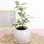 観葉植物 フィカス ベンジャミン 陶器鉢 プラ鉢皿付 高さ約20cm-25cm