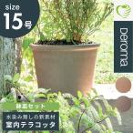 植木鉢 素焼き ライトグレー 15号鉢 おしゃれ 陶器 プランター DEROMA デロマ シリンダー ボルダード 43×32.2cm 受け皿付き【代引き不可・日時指定不可】