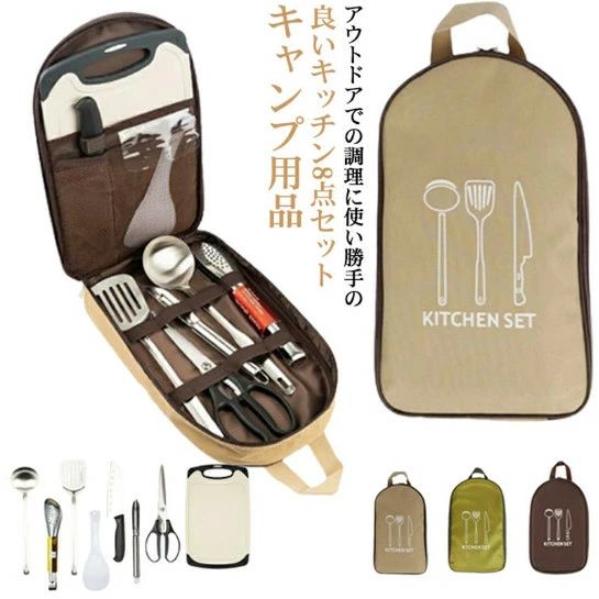 【3点15%offクーポン配布中! フライ返し おたま ハサミ 包丁 キャンプ用品 クッキングツール コンパクト 8点セット まな板 アウトドア キッチンセット