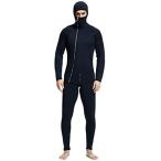 MORGEN SKY 魚突き ウェットスーツ メンズ 5mm/7mm 2ピース 裏起毛 フード一体式 ロングジョン スピアフィッシング 素潜り ウェーダー 釣り ウェア MY087(5mm,M)