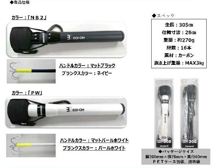 ヤマシタ エギ王 ランディングギャフ 305 NB2 (マットブラック/ネイビー)/PW (マットパールホワイト/パールホワイト)