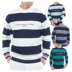 トミーヒルフィガー ゴルフ セーター メンズ 長袖 ニット クルーネック ウール混 ゴルフウェア ブランド 総柄 ボーダー ロゴ 秋 冬 THMA485
