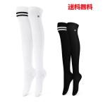 レディースゴルフオーバーニーソックス 美脚ライン ハイソックス 伸縮フィット ブラック ホワイト