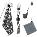 ゴルフタオル クラブ拭き パターカバーホルダー 快適ラウンド3点セット クラブタオル パターカバー紛失防止 コンペ (迷彩(グレー))