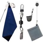 ゴルフタオル クラブ拭き パターカバーホルダー 快適ラウンド3点セット クラブタオル パターカバー紛失防止 コンペ 景品 (ネイビー)