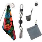 ゴルフタオル クラブ拭き パターカバーホルダー 快適ラウンド3点セット クラブタオル パターカバー紛失防止 景品 (グリーン(ゴルフ柄))
