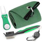 Aebor ゴルフタオル マイクロファイバー ワッフルパターン 三つ折り ゴルフタオル - クラブグルーブクリーナー付きブラシツールキット クリップ付