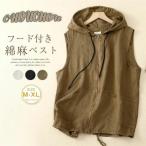 フード付き 綿麻 カーディガン レディース ホースジャケット カジュアル ルーズ ノースリーブ ベスト ショートジャケット 30代 40代 50代