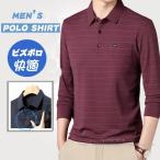 ゴルフウエア ポロシャツ メンズ 長袖 秋 ストライプ 大きいサイズ ビズポロ ストレッチ ゴルフウェア カットソー ビジネス フォーマル カジュアル通勤