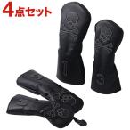 ゴルフクラブカバー ヘッドカバー 4種 番手表記付き 1番 3番 5番 UT スカルデザイン ブラック メンズ レディース ドライバー用 フェアウェイ用 保護カバー