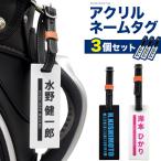 ゴルフ ネームプレート 3個セット アクリル ネームタグ キャディバッグ 名入れ 作成 名札 名前 バッグタグ おしゃれ 本革ベルト付 黒 白