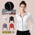 トレーニングウェア レディース ランニングウェア サイクルジャージ 長袖 おしゃれ 反射ライン付き ラッシュガード スポーツウェア ヨガウェア