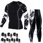 コンプレッションウェア サイクルジャージ トレーニング ランニングウエア メンズ 上下セット 加圧インナー ロングタイツ アンダーシャツ