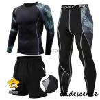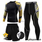 サイクルジャージ フィットネスウエア 3枚組 コンプレッションウェア 上下セット 加圧シャツ ハーフパンツ ロングタイツ トレーニング メンズ