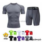 コンプレッションウェア サイクルジャージ トレーニング ランニングウエア 上下セット サポートアンダーウェア 加圧シャツ ショートタイツ メンズ