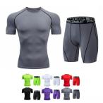 コンプレッションウェア サイクルジャージ トレーニング ランニングウエア 上下セット サポートアンダーウェア 加圧シャツ ショートタイツ メンズ