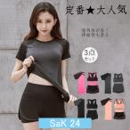 スポーツウェア レディース 3点セット セットアップ ヨガウェア ランニングウェア ウォーキング トレーニング ハーフパンツ フィットネス 部屋着