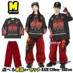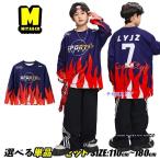 サッカー風 キッズダンス衣装 トップス 単品 ヒップホップ 男の子 女の子 男女MIX 長袖tシャツ 炎柄 ロンt 火 紺 オーバーサイズ ゆったり おしゃれ 普段着 ja