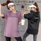 スポーツウェア メッシュ トップス 半袖 パーカー レディース ヨガウェア tシャツ 速乾 通気性 女性 プルオーバー フード付き 大きいサイズ トレーニングウェア